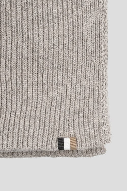 Детали: Мужской серый шарф из шерстяного микса от Hugo Boss (Хуго Босс). Прямоугольная форма, дизайн в рубчик, патч-лого. Размер: 180х 29 см
