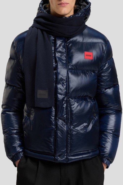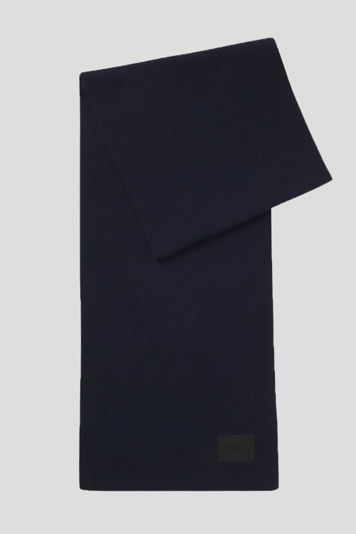 Детали: Мужской темно-синий хлопковый шарф Zevon от Hugo by Hugo Boss (Хуго бай Хуго Босс). Классическая модель, нашивка с логотипом