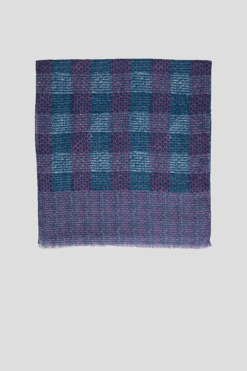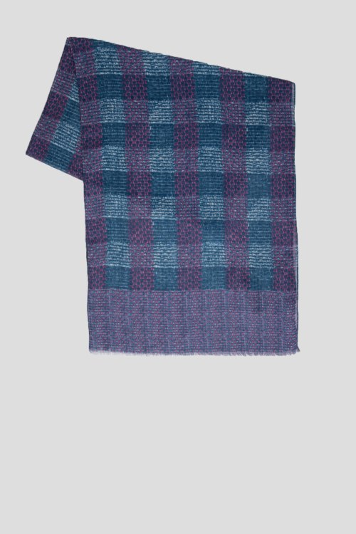 Детали: Мужской зеленый шарф из хлопка и льна от Scabal (Скабал). Комбинация материалов, клетка по всей поверхности, края с бахромой