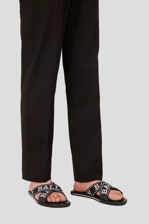 Детали: Муэские черные шлепанцы из текстиля от Bally (Балли). Закургленный носок, перекрестные ремешки с логотипом бренда