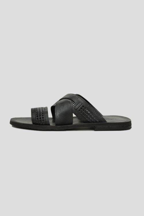 Детали: Шлепанцы черного цвета из натуральной кожи. Однотонная модель, закругленный носок, перфорированные вставки, фирменный логотип бренда на стельке