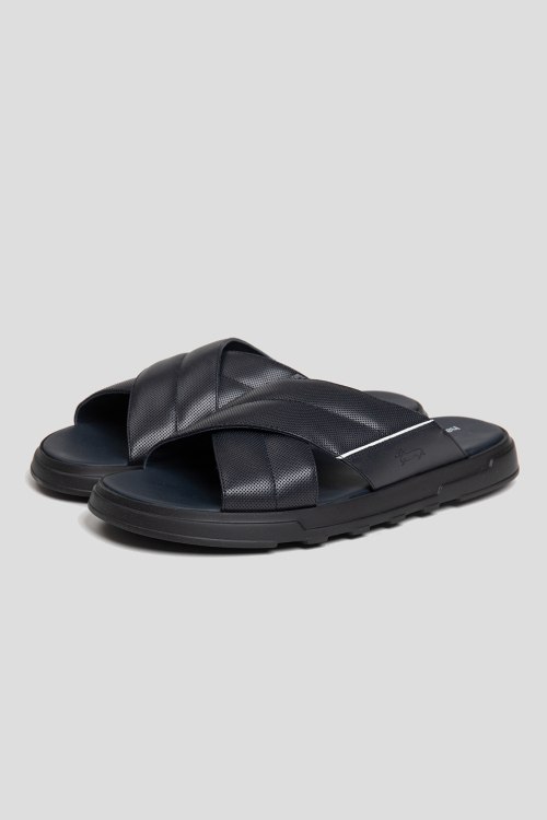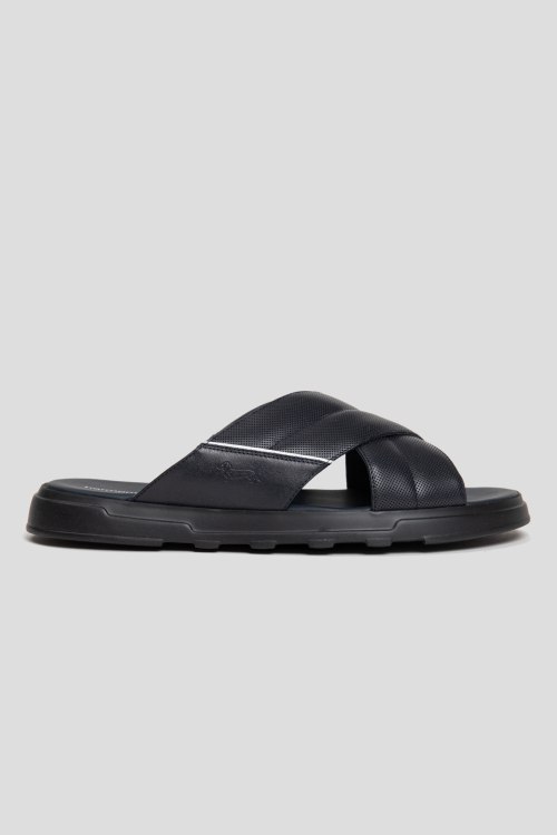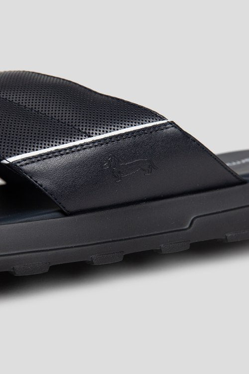 Детали: Мужские черные шлепанцы из натуральной кожи от Harmont & Blaine (Хармонт энд Блейн). Широкие перекрестные ремешки, кожаная стелька с логотипом бренда, тиснение с логотипом бренда сбоку