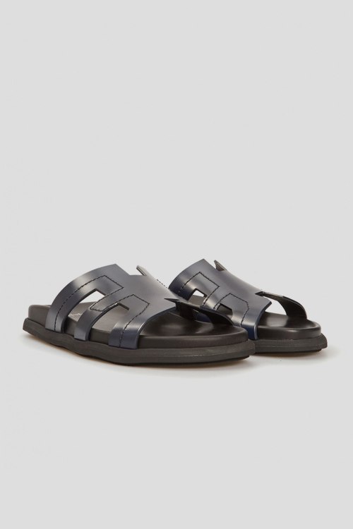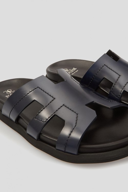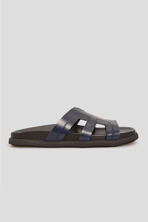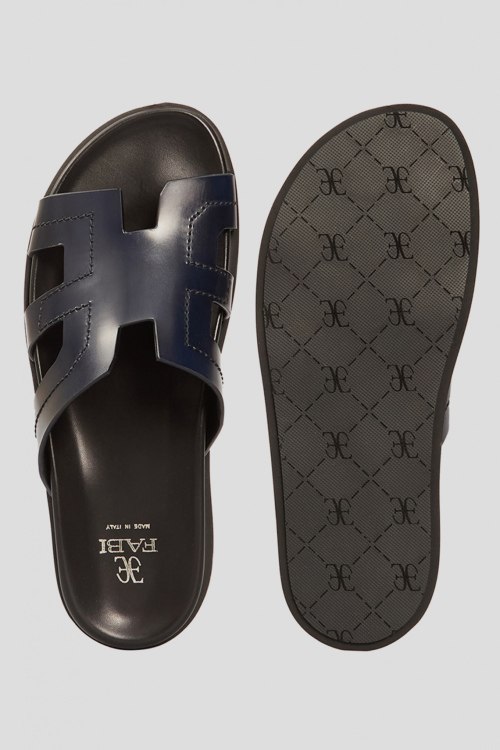 Детали: Мужские темно-синие шлепанцы из натуральной кожи от Fabi (Фаби). Закругленный носок, анатомическая стелька, логотип бренда