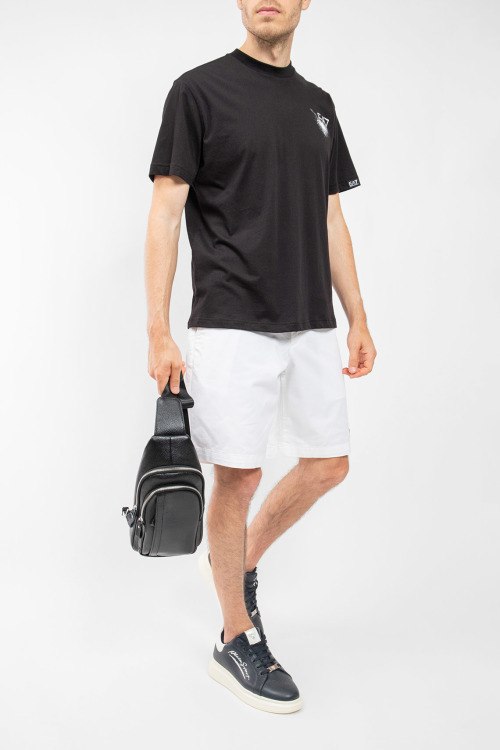 Мужские белые шорты из хлопкового микса от EA7 Emporio Armani (ЕА7 Эмпорио Армани). Длина до колена, застежка на молнию и пуговицу, четыре кармана, петли в поясе для ремня, патч-лого.