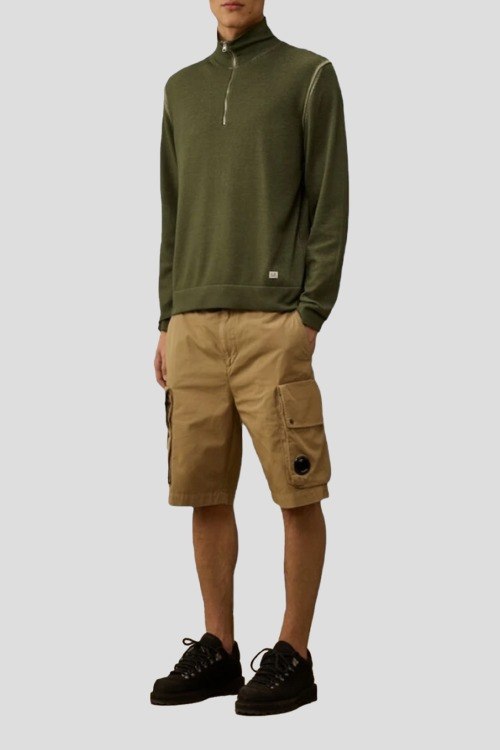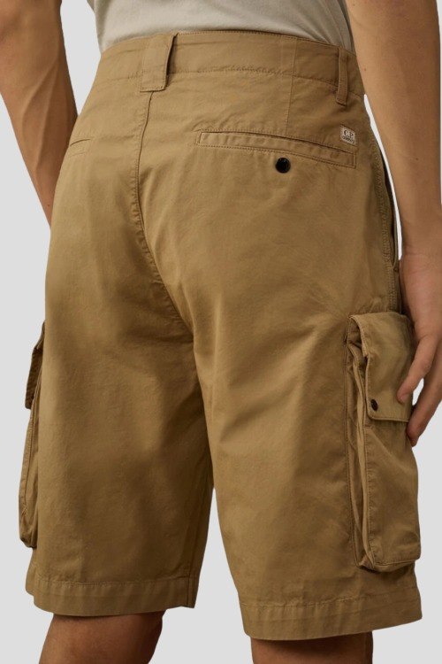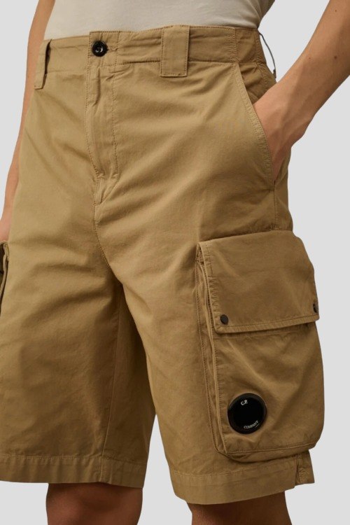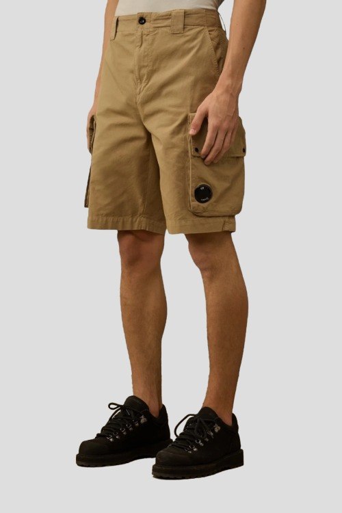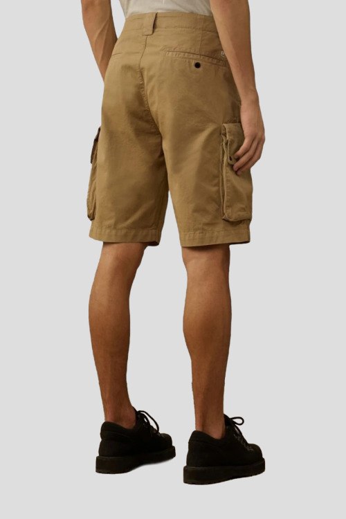 Детали: Мужские бежевые хлопковые шорты-карго от C.P. Company (СиПи Компани). Боковые и задние карманы, накладные карманы-карго, пояс с петлями для ремня, длина до колен