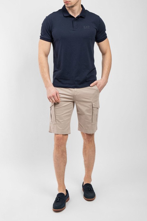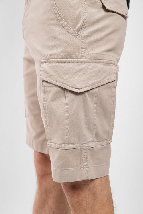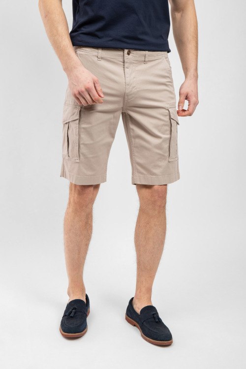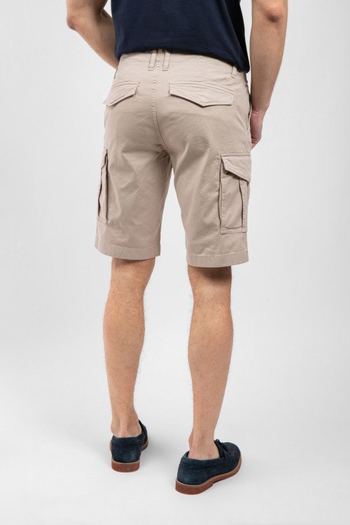 Мужские бежевые шорты из хлопкового микса от Harmont & Blaine (Хармонт энд Блейн). Длина до колена, высокая посадка, застежка на молнию и пуговицу, четыре прорезные карманы, боковые карманы с клапаном.