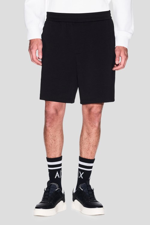 Детали: Мужские черные хлопковые шорты от Armani Exchange (Армани Эксчендж). Эластичный пояс, боковые и задние карманы, длина до колен