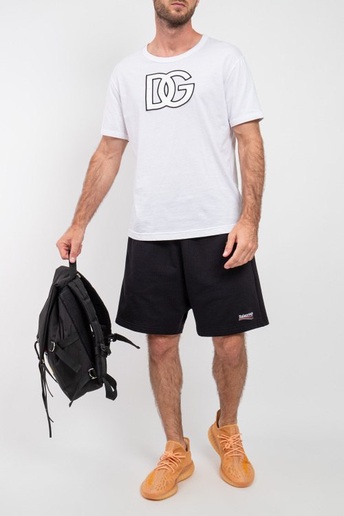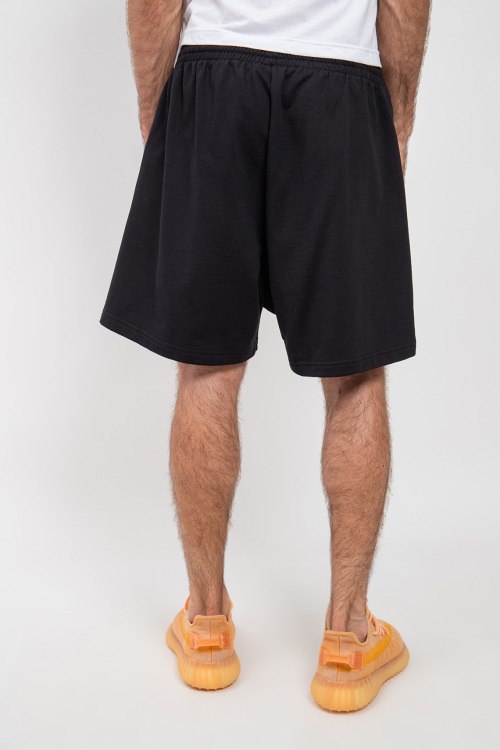 Мужские черные хлопковые шорты от Balenciaga (Баленсиага). Эластичный пояс, боковые карманы, вышитый логотип, длина до колен.