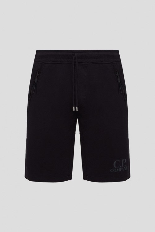 Детали: Мужские черные шорты из хлопка от C.P. Company (СиПи Компани). Эластичная резинка на поясе с кулиской, логотип бренда, прорезные карманы. Замеры: обхват пояса: для размера M - 78 см, обхват бедер: для размера M - 112 см, длина штанины: для размера M - 55 см, длина по шаговому шву: для размера M - 27 см