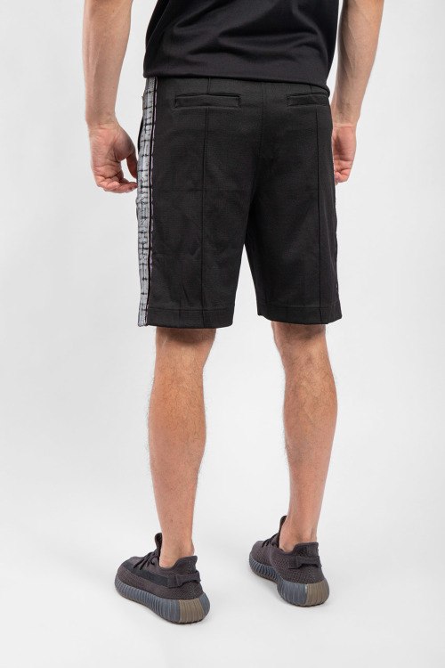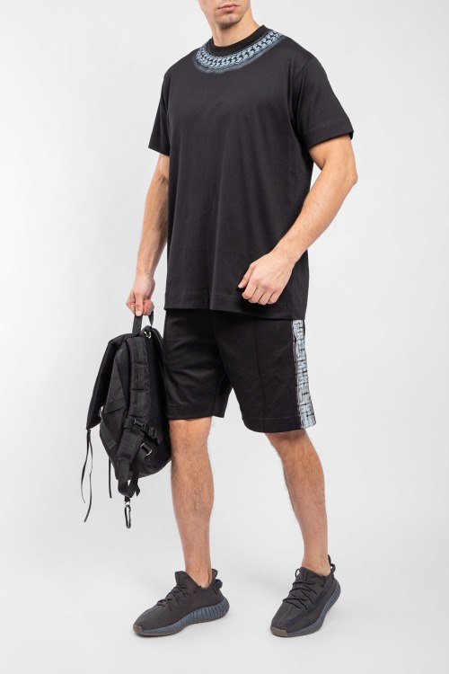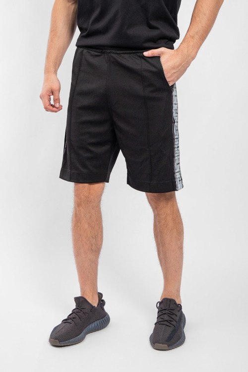 Мужские черные хлопковые шорты от Givenchy (Живанши). Эластичный пояс, брендированные лампасы, боковые карманы, длина до колен.