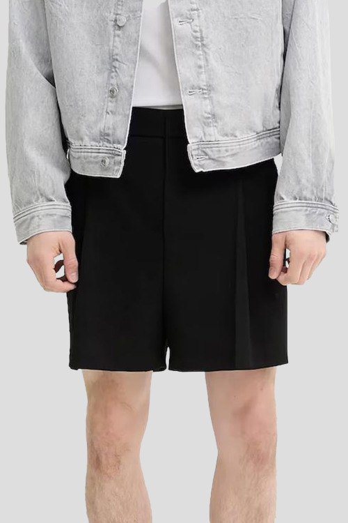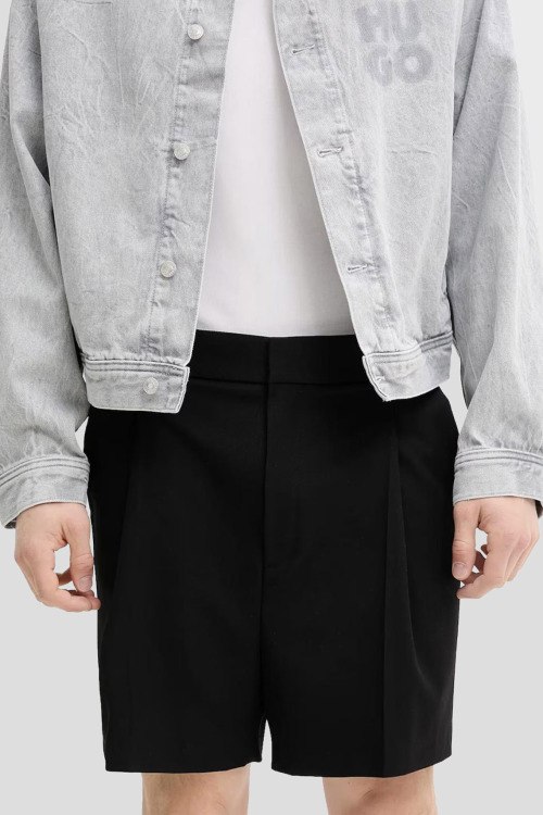 Детали: Мужские черные шорты из микса вискозы от Hugo by Hugo Boss (Хуго бай Хуго Босс). Дизайн со стрелками, эластичный пояс, боковые и задние карманы, длина выше колен