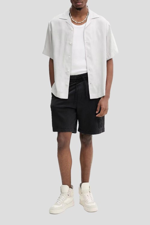 Детали: Мужские черные хлопковые спортивные шорты Distrell от Hugo by Hugo Boss (Хуго бай Хуго Босс). Эластичная резинка на поясе с кулиской, прорезные карманы, вышитый логотип бренда, свободный силуэт
