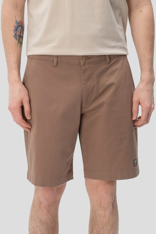 Детали: Мужские коричневые хлопковые шорты от Emporio Armani (Эмпорио Армани). Нашивка с логотипом, боковые и задние карманы, пояс с петлями для ремня, длина до колен
