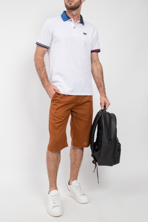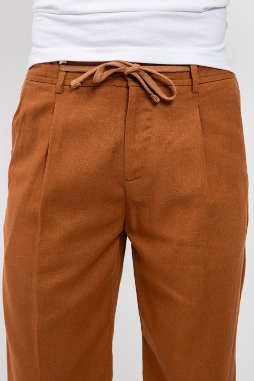 Мужские коричневые шорты из льна и вискозы от Bernese (Бэрнизе Милано). Боковые и задние карманы, пояс с петлями для ремня и на завязках, нашивка с логотипом сзади на поясе, длина до колен.