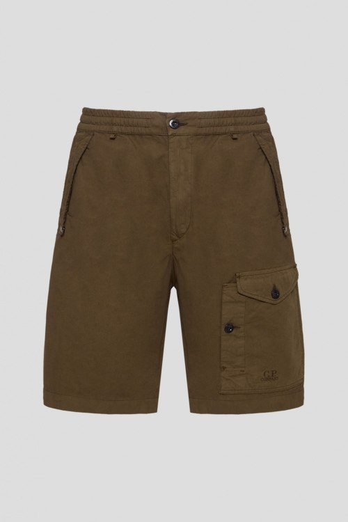 Детали: Мужские оливковые шорты из хлопка от C.P. Company (СиПи Компани). Эластичная резинка на поясе, застежка на молнию и пуговицу, пять карманов, вышитый логотип бренда. Замеры: обхват пояса: для размера 50 - 82 см, обхват бедер: для размера 50 - 118 см, длина штанины: для размера 50 - 55 см, длина по шаговому шву: для размера 50 - 24 см