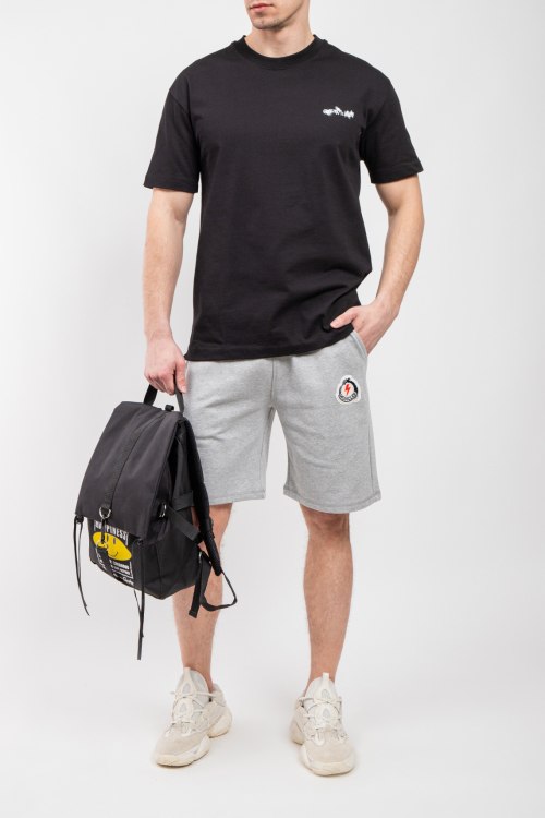 Мужские светло-серые спортивные шорты из хлопка от Moncler (Монклер). Длина до колена, эластичная резинка на поясе с кулиской, прорезные карманы, патч-лого.
