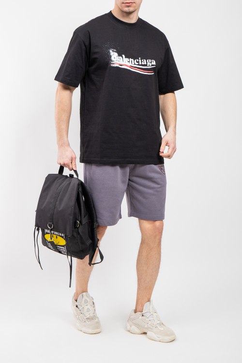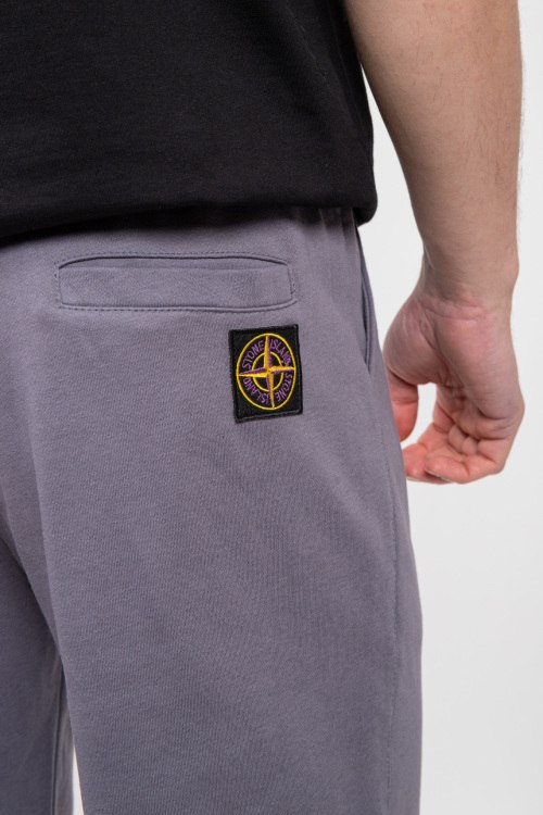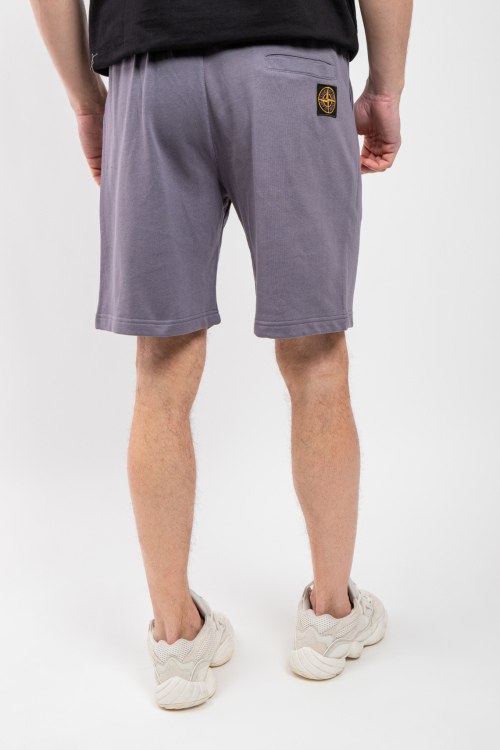 Мужские серые спортивные шорты из хлопка от Stone Island (Стоун Айленд). Эластичная резинка на поясе с кулиской, прорезные карманы, брендированный принт, патч-лого.