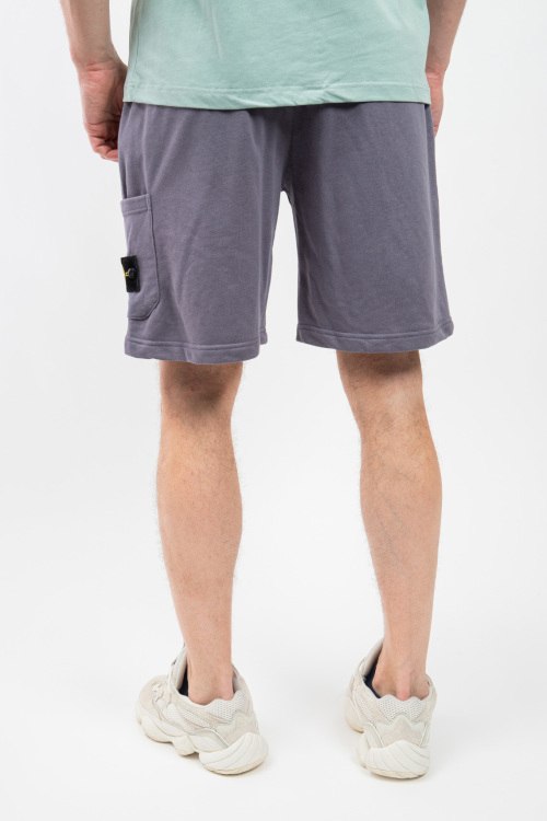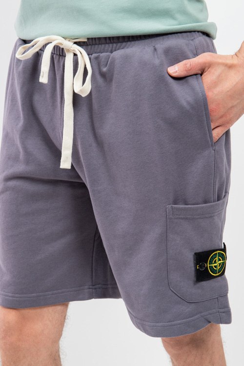 Мужские серые хлопковые шорты от Stone Island (Стоун Айленд). Эластичный пояс на завязках, боковые карманы, накладной карман с логотипом, длина до колен.