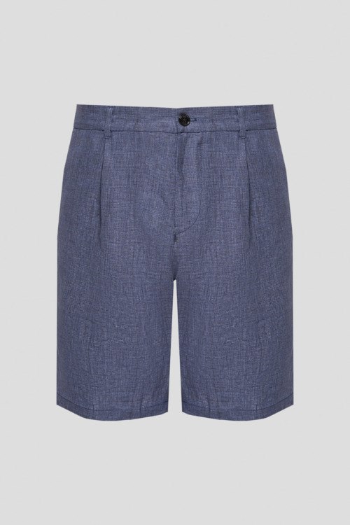 Детали: Мужские синие шорты из льна от Joop! (Йооп!). Прямой фасон, застежка на пуговицу и молнию, эластичный пояс с петлями для ремня, два боковых прорезных кармана, два кармана на пуговице сзади, патч-лого. Замеры: обхват пояса: для размера 48 - 82 см, обхват бедер: для размера 48 - 100 см, длина штанины: для размера 48 - 50 см, длина по шаговому шву: для размера 48 - 21,5 см