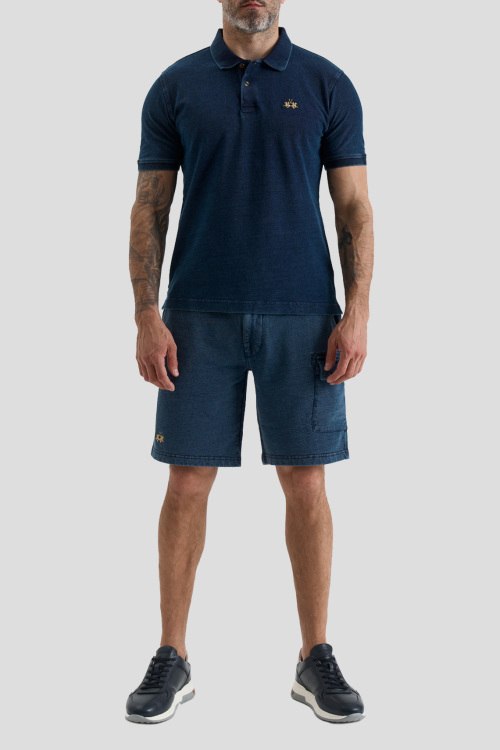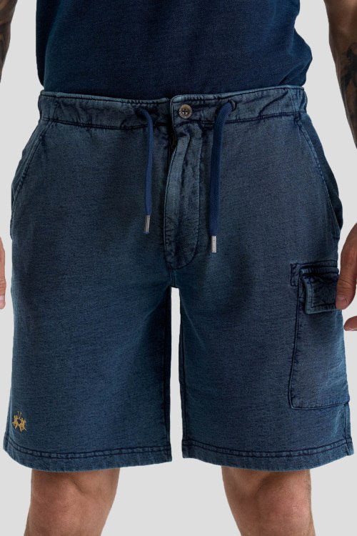 Детали: Мужские синие хлопковые шорты-карго от La Martina (Ла Мартина). В поясе на завязках, боковые и задние карманы, накладной карман-карго, длина до колен