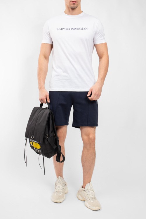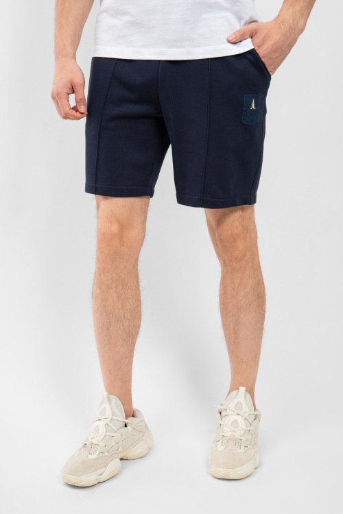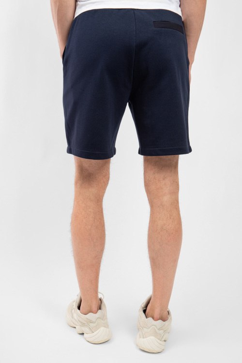 Мужские темно-синие хлопковые шорты от Aeronautica Militare (Аэронавтика Милитари). Эластичный пояс на завязках, боковые карманы, нашивка с логотипом, длина до колен.