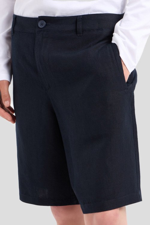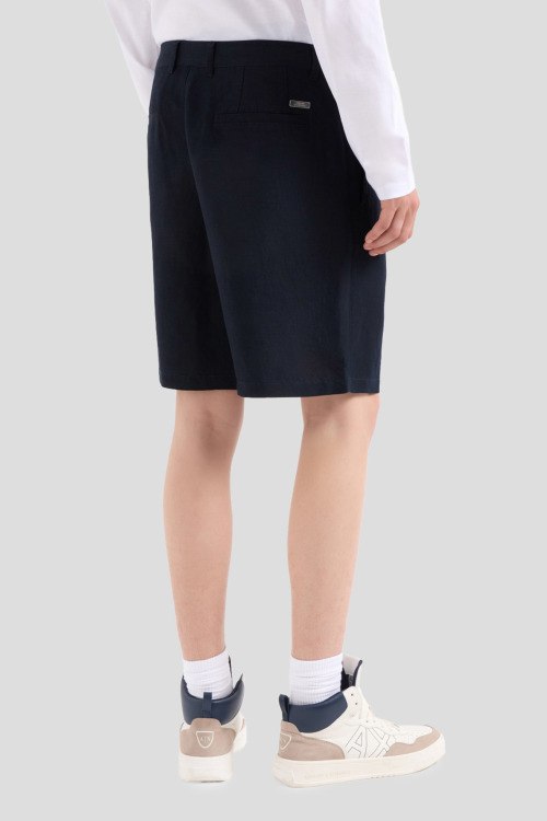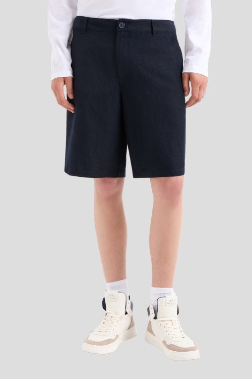 Детали: Мужские темно-синие хлопковые шорты от Armani Exchange (Армани Эксчендж). Боковые и задние карманы, пояс с петлями для ремня, длина до колен