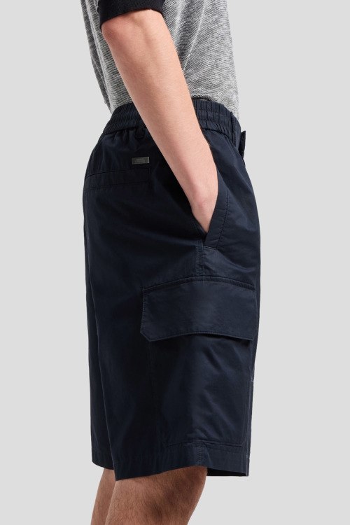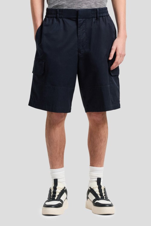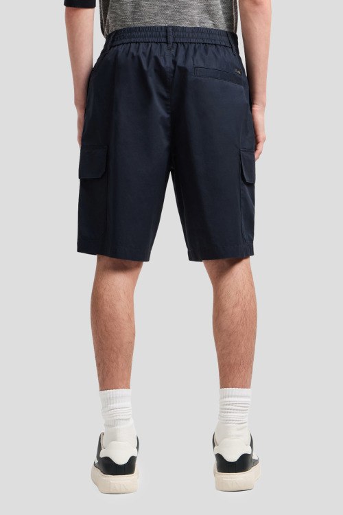 Детали: Мужские темно-синие хлопковые шорты-карго от Armani Exchange (Армани Эксчендж). Боковые и задние карманы, накладные карманы-карго, эластичный пояс с петлями для ремня, длина до колен