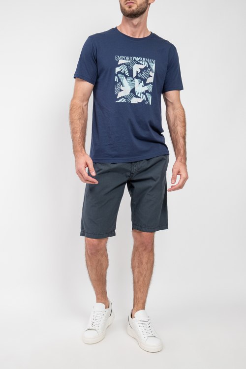 Мужские темно-синие хлопковые шорты от Fred Mello (Фред Мелло). Эластичный пояс, боковые карманы, нашивка с логотипом сзади на поясе, длина до колен.
