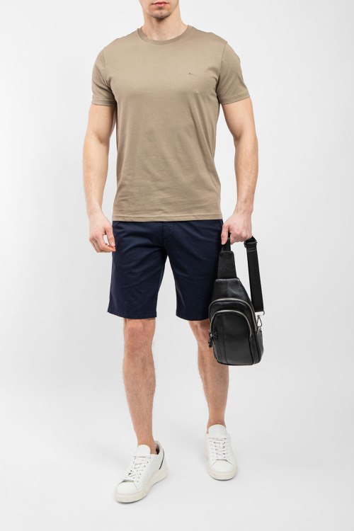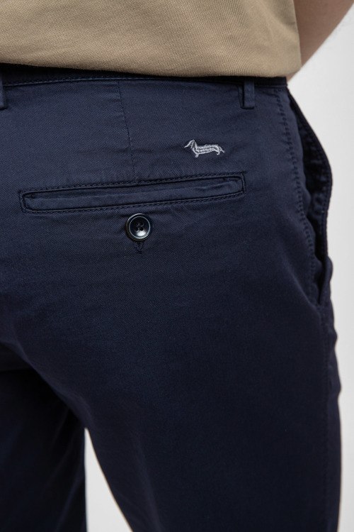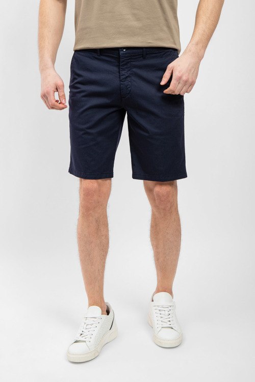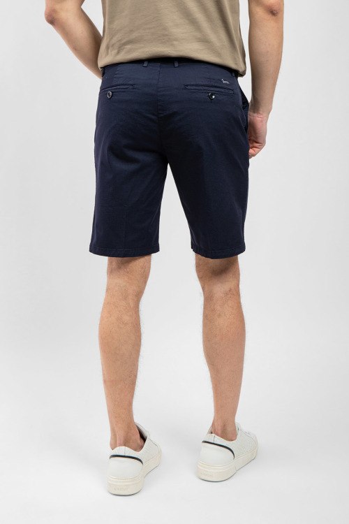 Мужские темно-синие шорты из хлопкового микса от Harmont & Blaine (Хармонт энд Блейн). Длина до колена, высокая посадка, застежка на молнию и пуговицу, четыре кармана, петли в поясе для ремня.