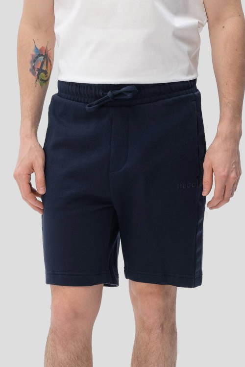 Детали: Мужские темно-синие шорты Tonal Logo из хлопка от Hugo Boss (Хуго Босс). Длина до колена, эластичная резинка на поясе, прорезные карманы, лампасы в тон изделия