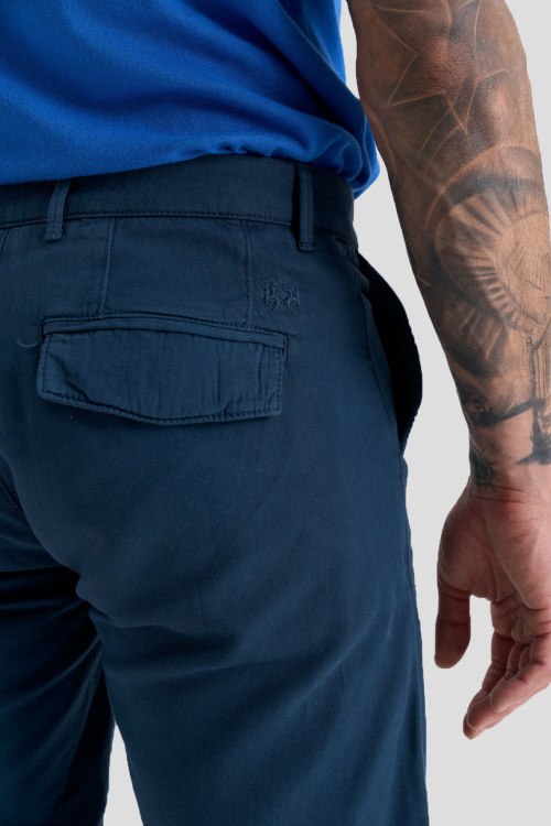 Детали: Мужские темно-синие шорты из хлопка и льна от La Martina (Ла Мартина). В поясе с петлями для ремня, боковые и задние карманы, длина до колен
