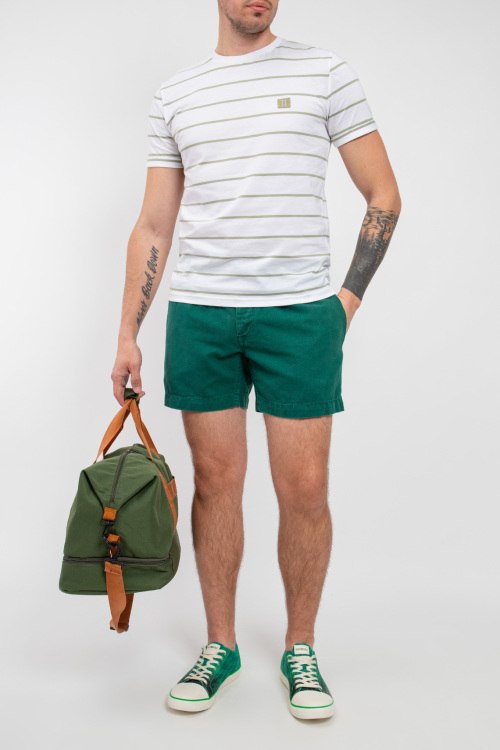 Мужские зеленые шорты из хлопка и льна от Ralph Lauren (Ральф Лорен). Комбинация материалов, боковые и задние карманы, короткая длина. Линейка Polo Ralph Lauren.