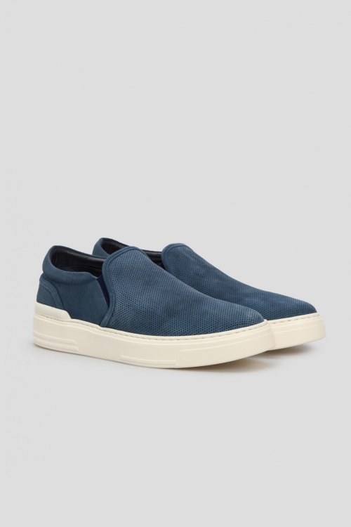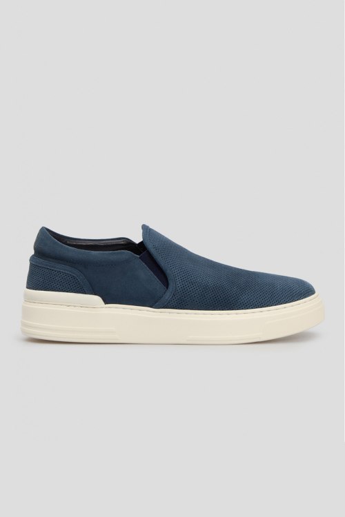 Детали: Мужские темно-синие замшевые слипоны от Fabi (Фаби). Закругленный носок, перфорированный дизайн, эластичная вставка сбоку, резиновая подошва, логотип бренда