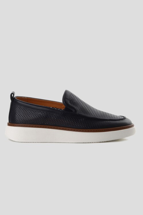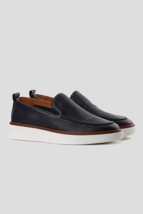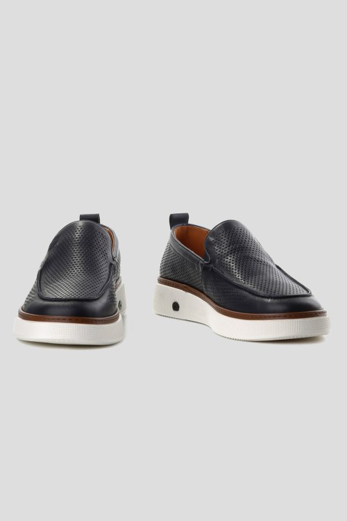 Детали: Мужские темно-синие кожаные слипоны от Le Berdes (Ле Бердес). Перфорированный дизайн, закругленный носок, кожаная стелька, белая подошва. Замеры стельки: размер 39 (26,5 см), 40 (27 см), 41 (27,5 см), 42 (28 см), 43 (28,5), 44 (29 см), 45 (29,5 см)
