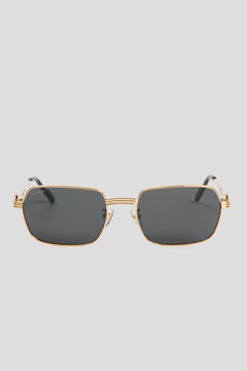 Детали: Мужские черные солнцезащитные очки от Cartier (Картье). Темные линзы с логотипом, золотистая металлическая оправа. В комплекте брендовый чехол и коробка. Размеры: 56*19*145
