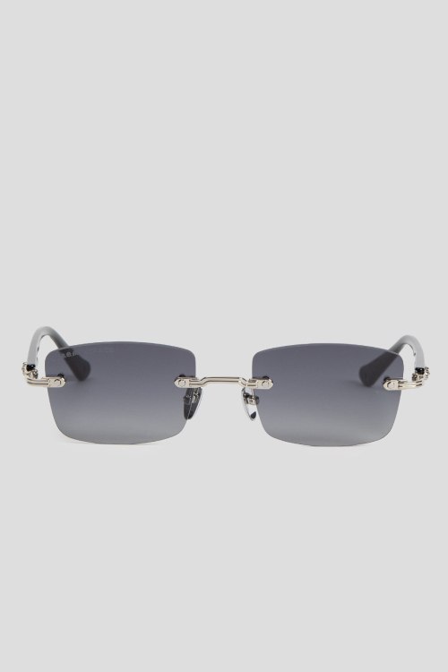 Детали: Мужские черные солнцезащитные очки от Chrome Hearts (Хром Нартс). Темные линзы с логотипом, серебристая металлическая оправа. В комплекте брендовый чехол и коробка. Размеры: 57*21*151