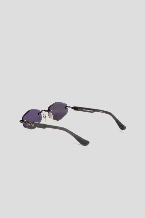 Детали: Мужские солнцезащитные очки от Chrome Hearts (Хром Хартс). Черные дужки с металлическими деталями, геометричная форма, темная линза. Комплектация: чехол, салфетка, коробка, пакет. Размеры: 56*21*146