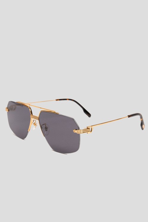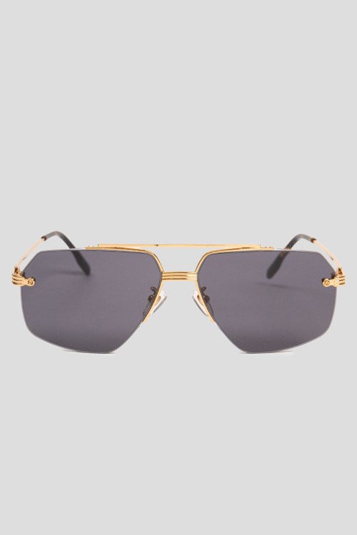Детали: Мужские солнцезащитные очки от Cartier (Картье). Золотистая оправа, затемненная линза, декорированные дужки. Комплектация: чехол, салфетка, коробка. Размер: 60*15*145