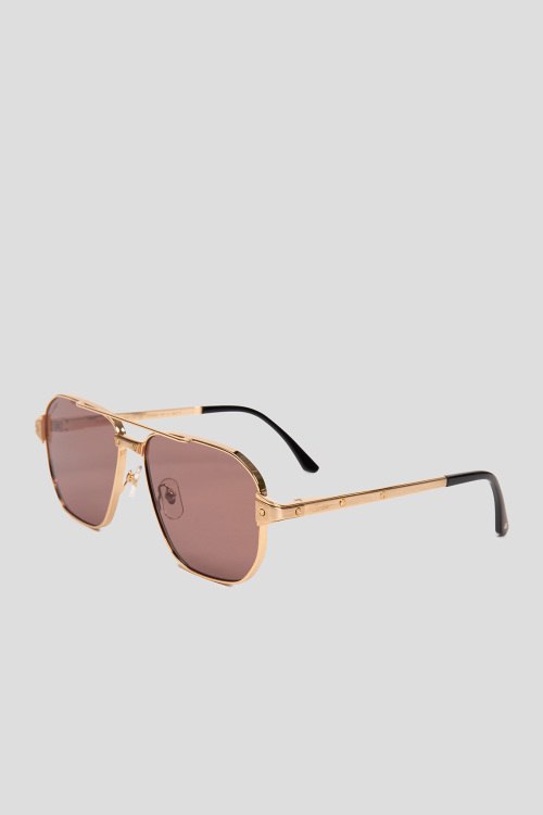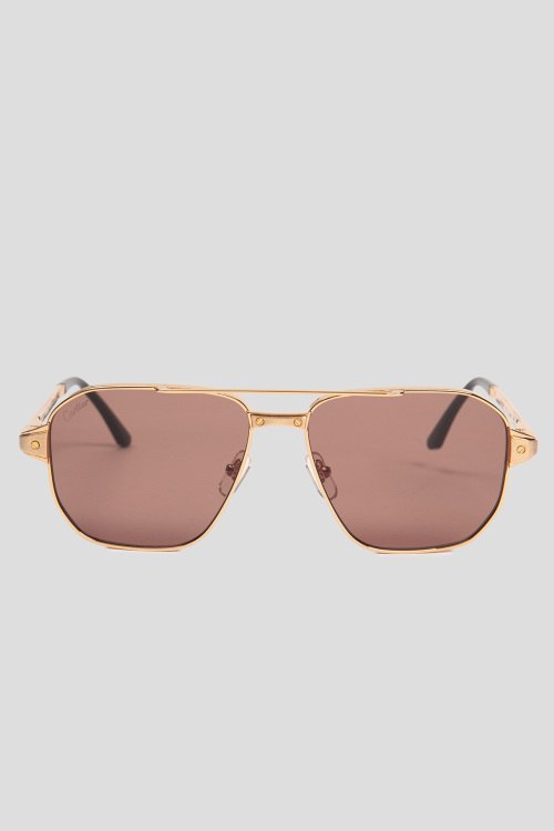 Детали: Мужские коричневые солнцезащитные очки от Cartier (Картье). Золотистая оправа, коричневая линза с логотипом. Комплектация: чехол, салфетка, коробка. Размер: 59*15*140