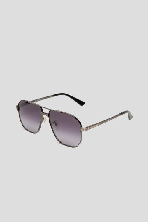 Детали: Мужские серые солнцезащитные очки от Cartier (Картье). Металлическая оправа формы мягкий квадрат, затемненные линзы, тонкие дужки