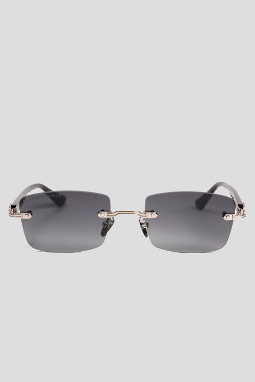 Детали: Мужские солнцезащитные очки от Chrome Hearts (Хром Хартс). Прямоугольная форма, серебристая оправа, затемненная линза с логотипом. Комплектация: чехол, салфетка, коробка. Размеры: 57*21*151