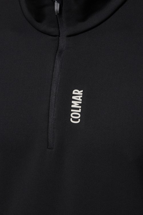 Детали: Мужская черная спортивная кофта от Colmar (Колмар). Воротник-стойка, застежка-молния, принт с логотипом, полуприталенный фасон. Замеры: длина рукава: длинный, для размера M - 64 см, обхват груди: для размера M - 110 см, обхват талии: для размера M - 100 см, длина изделия по среднему шву спинки от горловины: для размера M - 62 см