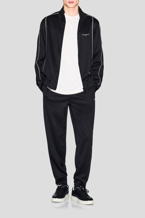 Детали: Мужская черная спортивная кофта из хлопкового микса от Armani Exchange (Армани Эксчендж). Логотип на груди, высокий воротник, боковые карманы, застежка-молния, нижний край на резинке, классическая длина