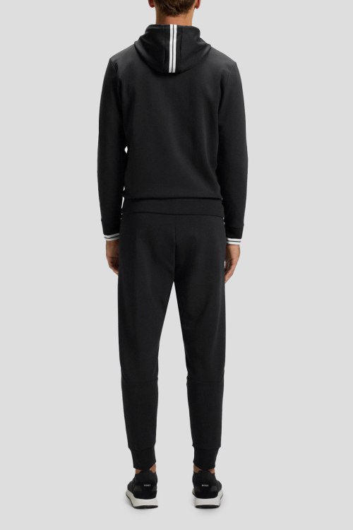 Детали: Мужская черная хлопковая спортивная кофта Zone от Hugo by Hugo Boss (Хуго бай Хуго Босс). Капюшон на завязках, логотип на груди, боковые карманы, застежка-молния, классическая длина, трикотажные манжеты и нижний край