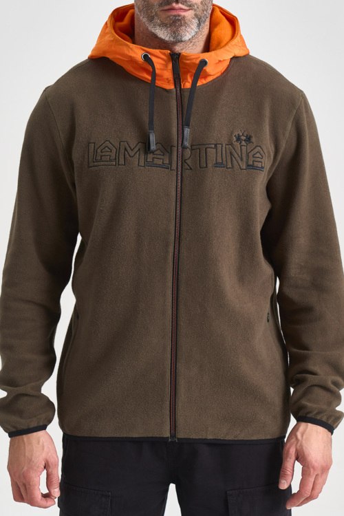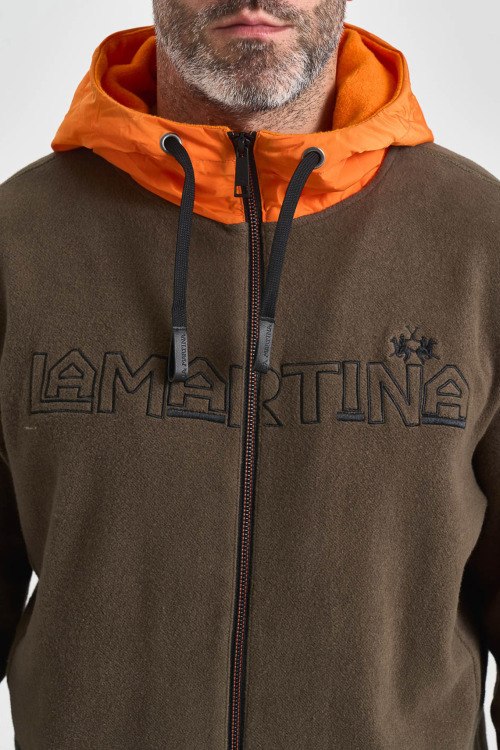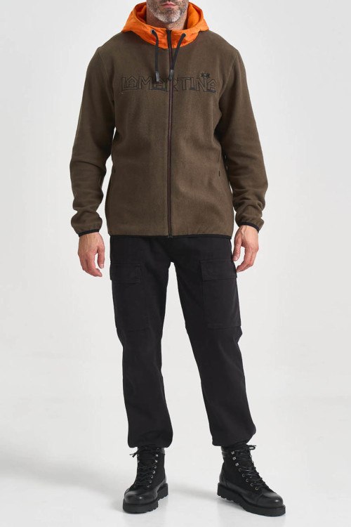 Детали: Мужская хлопковая спортивная кофта цвета хаки от La Martina (Ла Мартина). Логотип на груди, капюшон на завязках, боковые карманы на молнии, застежка-молния, классическая длина, манжеты и нижний край на резинке. Параметры модели: 103 см - 87 см - 99 см. Рост - 182 см. Размер на фото - L
