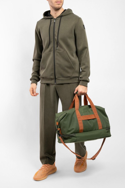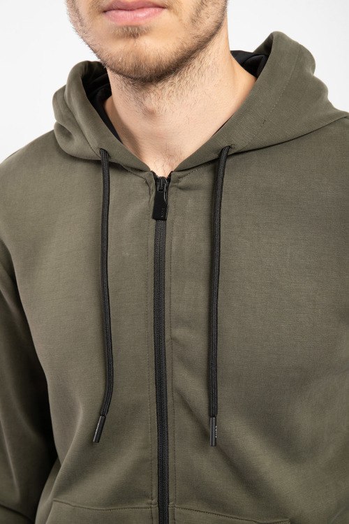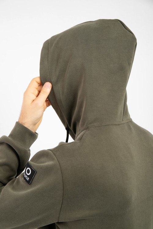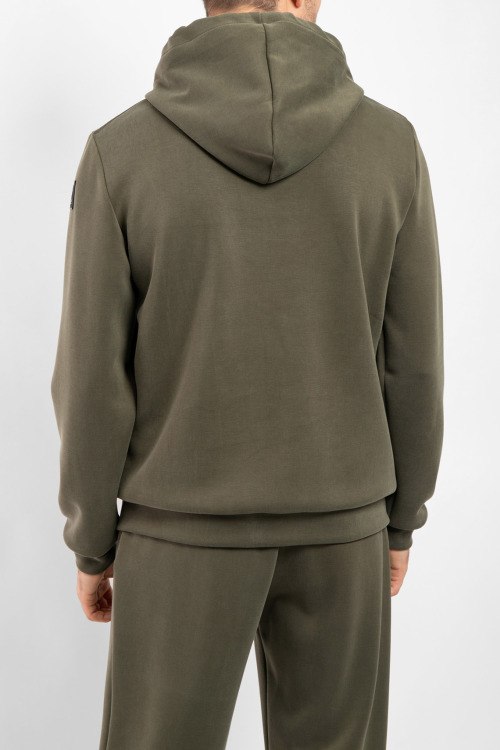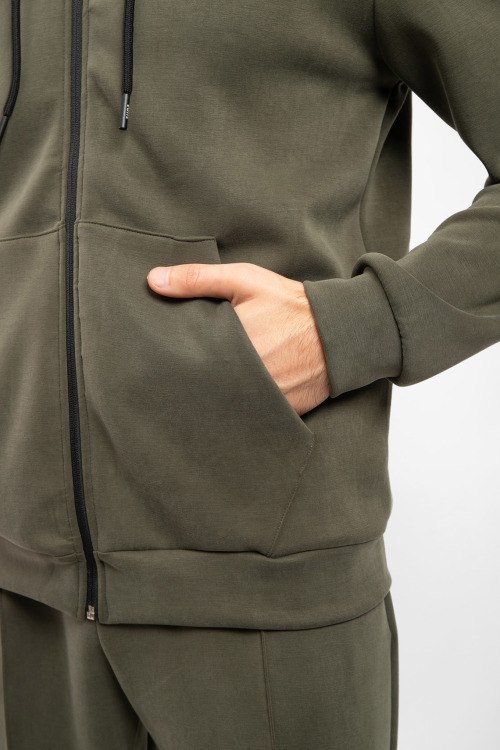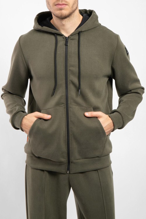 Мужская зеленая спортивная кофта из полиэстера и эластана от Suns Boards (Санс Боадс). Вшитый капюшон, застежка на молнию, накладные карманы, патч-лого, манжеты и низ изделия в рубчик.