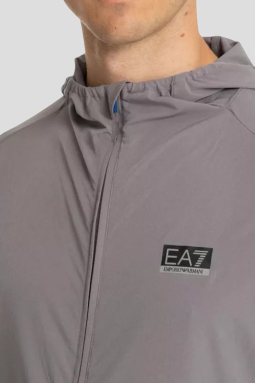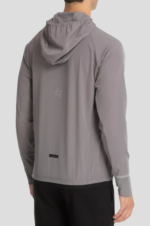 Детали: Мужская серая спортивная кофта Dynamic Athlete из технической ткани Ventus7 от EA7 Emporio Armani (ЕА7 Эмпорио Армани). Логотип на груди, вшитый капюшон, боковые карманы, застежка-молния, классическая длина