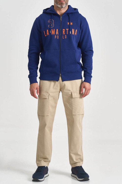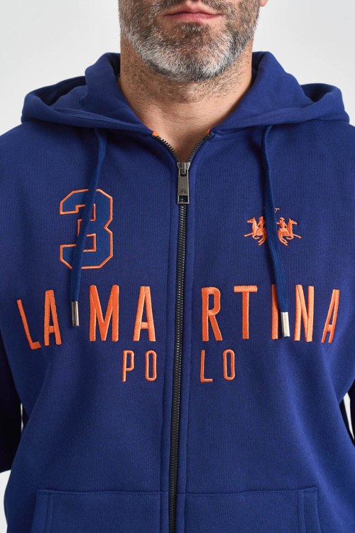 Детали: Мужская темно-синяя хлопковая спортивная кофта от La Martina (Ла Мартина). Логотип на груди, капюшон на завязках, боковые карманы, застежка-молния, классическая длина, трикотажные манжеты и нижний край. Параметры модели: 103 см - 87 см - 99 см. Рост - 182 см. Размер на фото - L