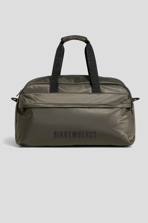 Детали: Мужская текстильная спортивная сумка цвета хаки Arlo от Bikkembergs (Биккембергс). Нашивка с логотипом, внешний карман на молнии, застежка-молния, одно отделение, две круглые ручки. Размеры: 53.5 x 29 x 24 см