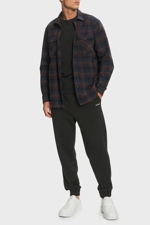 Детали: Мужские черные спортивные брюки Dayote из хлопка от Hugo Boss (Хуго Босс). Классическая длина, трикотажная резинка на манжетах, прорезные карманы, логотип бренда